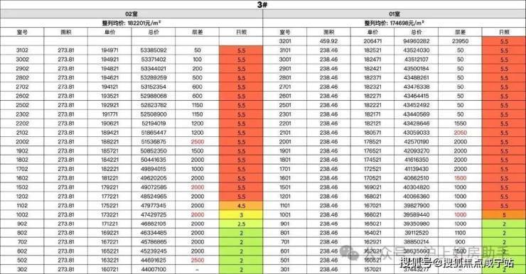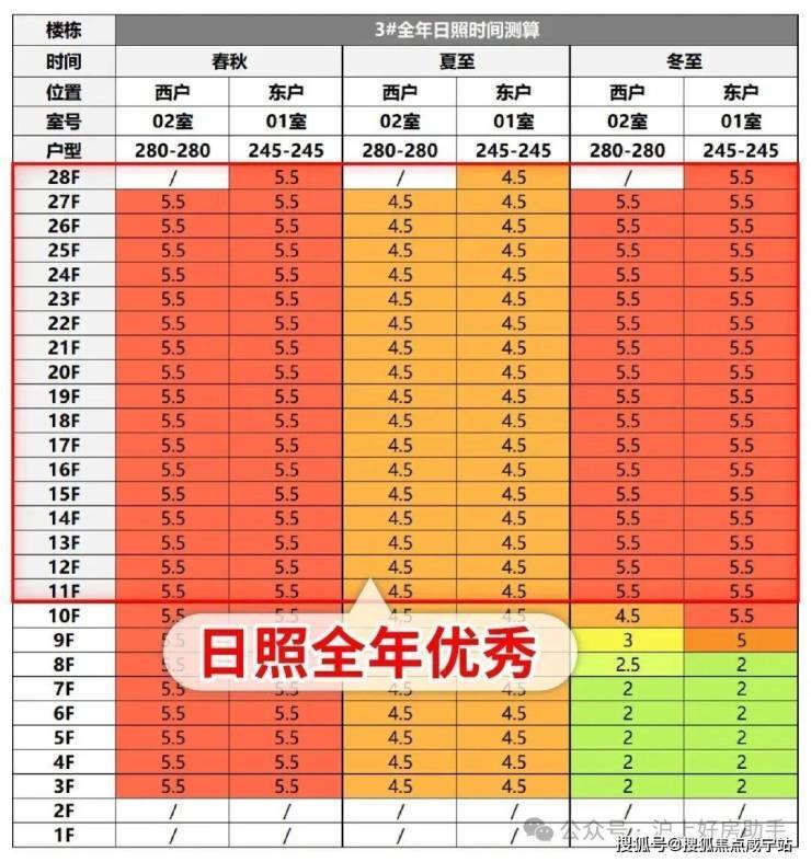 建面约238㎡户型的均价约17.3万/㎡,建面约275㎡户型的均价约18.2万/㎡,比起前面衡复徐滨的次新房动辄22万、24万/㎡的挂牌价,倒挂不要太明显,安全垫不言而喻! 总价方面,3500-4000万的房源有8套,4000-5000万的房源足足有29套,4000万级预算买家上车的概率非常高! 除了充满诚意的价格,本次推出的3号楼,也是妥妥次楼王级楼栋,整体价值非常突出,具体来看: 3号楼被甲板花园、古树花园、水流镌刻花园三座花园景观环绕,同时直面星空戏水池,搭配全景舱户型,每户业主都能享受无死角的绿意景观,也能随时下楼来场绿野仙踪级别的漫步! 一方面,是和楼王同级别的尊崇归家路线,从时尚街区到礼遇入口,穿过大堂、品质车库直达3号楼,一路的归家礼仪将顶豪气质展露无遗! 另一方面,会所、下沉庭院、星空戏水池等核心配套均紧邻3号楼布局,使其与楼王共享社区顶级核心资源。 大面积落地窗将庭院景致引入室内,光影流转间,内外无界。Artdeco艺术玻璃点缀其上,于细节处勾勒复古摩登韵味。让业主归家的临门一脚,也能展现极致的从容仪式。 3号楼到南面楼栋的间距超过30米,西面的楼间距接近50米,北面楼间距接近70米,搭配全景舱户型,等于业主在房间的任何角度都能拥享开阔视野,体现顶豪业主一往无前的非凡气度。 我们建筑师对3号楼全年日照做了测评,11楼以上几乎全年优秀日照,这在楼栋密集的上海内环内非常少见。 但从楼层价差来看,越高的价差反而越低,所以买的越高越划算,且能有更独特的居住体验! 比如这个建面约238㎡户型,采用环幕设计,将徐汇滨江城市景观、下沉庭院等自然与人文景观尽收眼底,营造沉浸式居住体验。 超大面宽搭配全景落地窗,确保阳光充足,空间通透感强,使室内外空间无缝衔接。 主卧为行政级套房,配备步入式衣帽间、双台盆主卫及独立阳台,私密性与舒适度兼备。次卧及书房设计灵活,可满足不同家庭成员需求,如儿童房、工作室或私人影院等,适应家庭成长变化。 再看建面约275㎡户型,同样采用环幕采光全景舱设计,充分引入自然光。同时俯瞰徐汇滨江城市景观、社区内部核心景观,实现“推窗即景”的沉浸式体验。 中央殿堂级家庭厅可灵活改造为儿童房、工作室、私人影院等,满足家庭不同阶段需求;4+1房设计提供充足房间,双主卧级套房设计尊重不同代际私密需求,长辈房带独立卫浴,年轻人作息互不干扰。 不少客户直言:275㎡户型,使用感堪比传统300㎡+大平层,进一步强化资产安全垫,性价比与实用性拉满。