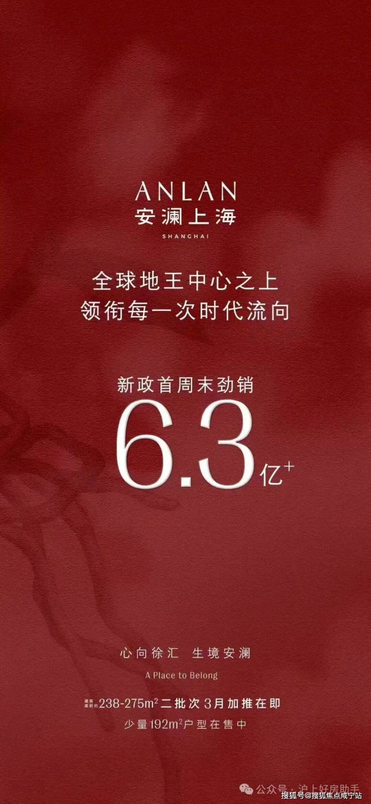 据悉,新政首个周末,项目热销约6.3亿+,以领跑之势成为新政后上海楼市的现象级标杆,引领市场新风向! 此次项目带着二批次 约238/275㎡ 新品归来, 均价约17.91万元/㎡, 更是以 总价4000万级预算门槛, 势如破竹之势,最终以认购率118%的优越成绩收尾! 那无非两大核心:绝版地段+硬核产品。安澜上海占位徐汇正心,串联衡复历史风貌区与徐汇滨江两大城市极核,是不可复制的价值枢纽;搭配抬板式规划、超大体量综合体全能配套、全景舱高实得率户型...地段与产品双重顶配,成为当下上海更值得入手的顶豪楼盘。 2025年9月,中海、招商、徐汇城投、中旅四家国央企以439.5亿的总价成功拿下上海徐汇东安地块(125 - 31127b - 24),项目案名“安澜上海”, 总价超越香港中环地王,成为“全球新地王”,