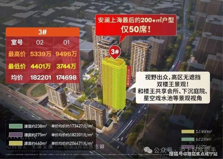 据悉:【安澜上海】二批次已过会,加推3号楼,仅51套建面约238/275㎡大平层,均价17.91万/㎡;在新政之下,这栋楼入手紧迫性拉满!认购首日,认筹比已高达80%+。另前期少量约192-370㎡稀缺大户型,以及4套建面约420㎡及2套560㎡顶楼复式,带来近百平的超大全景舱、三面采光客厅、空中花园等罕见户型设计,均价17.88万/㎡在售,样板间开放中,线上提前预约!